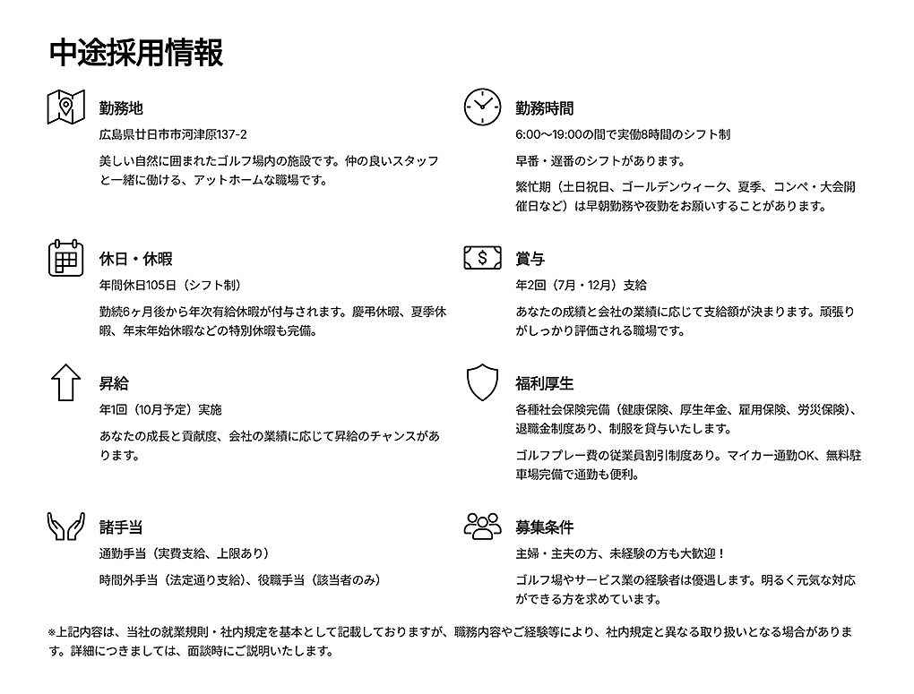 鷹の巣ゴルフクラブでは、現在スタッフを募集しております。
